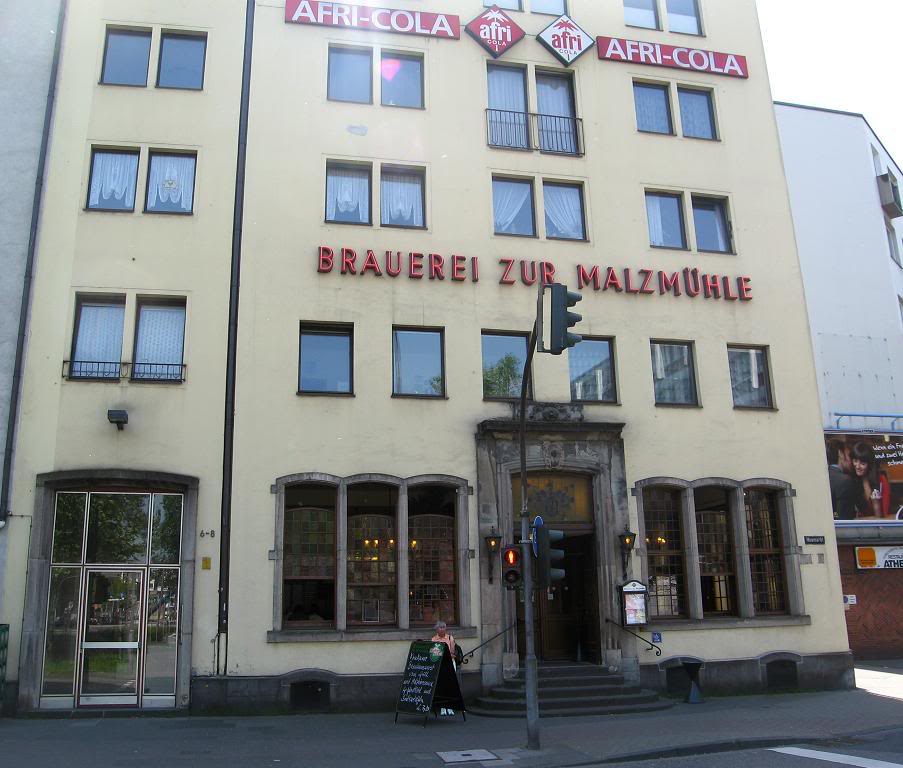 Всё, что оставалось от этого старинного пивного паба в 1945 году, был кусок стены с дверным проёмом и несколько деревянных панелей с гравюрами. Сегодня всё восстановлено в точном соответствии с оригинальным проектом. Нам принесли немыслимое количество разнообразных изделий из свинины с тушёной капустой – всё невероятно вкусное, но если одному человеку съесть всю порцию, кондрашка гарантирована. Пиво – Kölsch – здесь разносят в высоких тонких стаканах. Они варят три сорта пива: крепкий горьковатый Päffgen, сильно пахнущий хмелем Früh и сладковатый чёрный Malzmühle. Первые два пришлись мне по вкусу (особенно Früh), но Malzmühle был слишком сладким, на мой вкус.