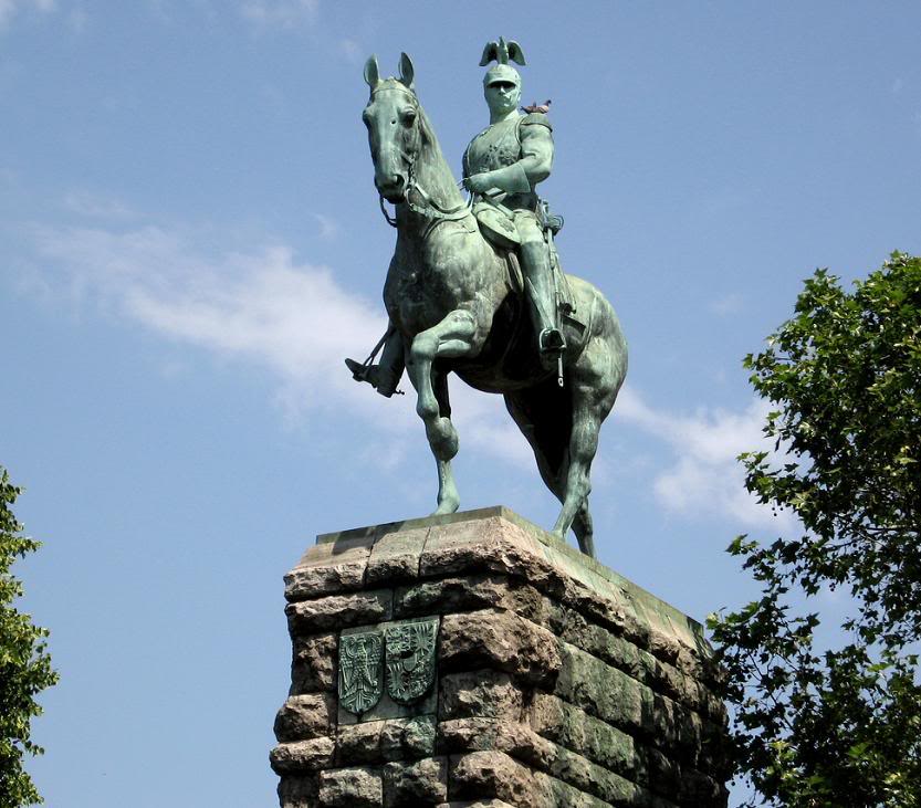 Есть позеленевшая от времени конная статуя Кайзера, украшающая вид на Рейн...