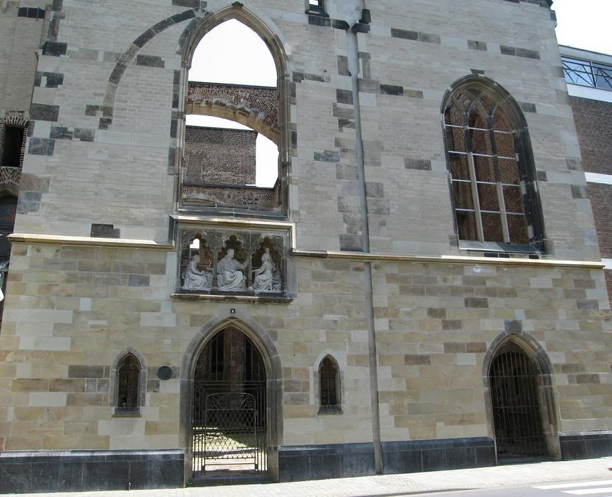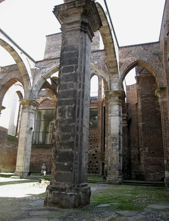 Возвращаясь из Brauerei zur Malzmuhle в наш отель, расположенный по соседству с Собором, мы попали на улицу, где стоит разбомбленное здание. Оно намеренно не восстановлено. От дома остались только наружные стены, колонны и стральчатые арки, но нет ни потолков, ни крыши.