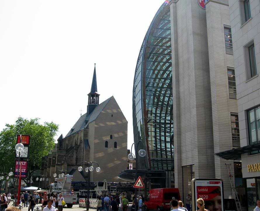 Нужно отдать должное кёльнским архитекторам: в городе старое вполне гармонично сочетается с ультра-модерными зданиями. Вот один пример, снятый с двух разных ракурсов: