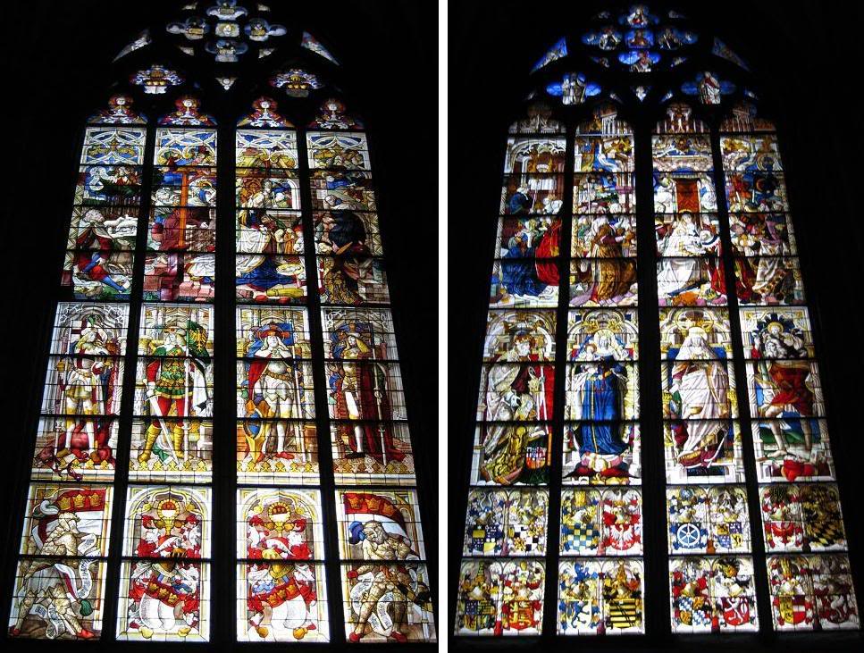 Сильное впечатление производят гигантские витражи – сочетание библейских историй с картинами славного христова воинства, демонстрирующе го последние моды средневековья. Внимательно рассматривая витражи, начинаешь понимать, что Собор – не просто храм для восхваления Бога, но важный национальный символ Германской Мощи и Гордости. Более 500 лет понадобилось мастерам на создание этой «стеклянной живописи» – от первого витража сделанного в 1310 году до последнего, выполненного в 1848-ом. Общая площадь витражей почти вдвое превосходит площадь плана Собора.