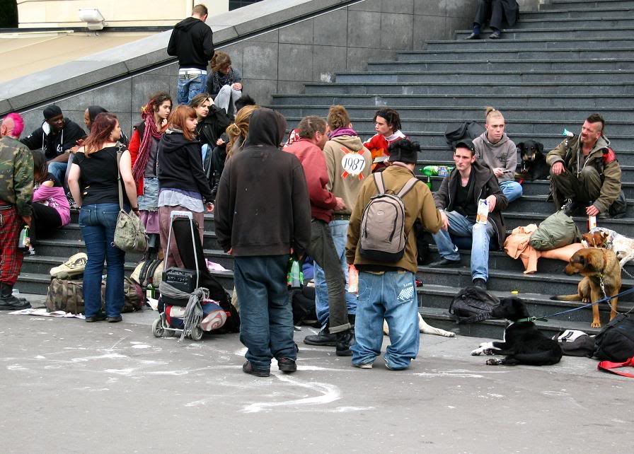 На ступеньках Оперы каждый день собираются панки обоих полов, многие с собаками. Над этой тусовкой всегда стоит аромат немытого тела и душистой травки. Ведут они себя вполне мирно, идущих в Оперу зрителей не задевают, так что полиция их не трогает.