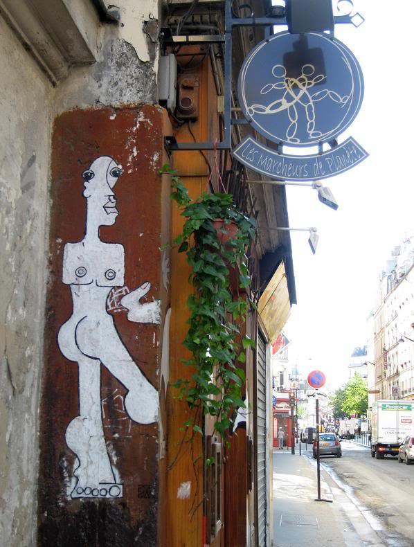 Вообще, надо отметить несравненное превосходство парижского графитти над любыми наскальными рисунками в других местах планеты: этих ребят действительно следует считать художниками! Вот вам ещё два примера. Первый – графитти на дверях трансформаторн