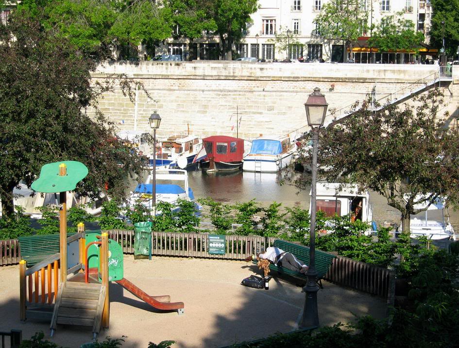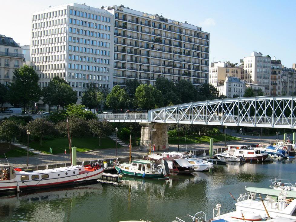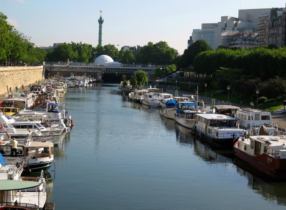 Port de plaisance de Paris-Arsenal. Этот канал, идущий по радиусу к юго-юго-востоку от Площади Бастилии и соединяющий канал Сан-Мартен с Сеной, был в своё время частью фортификационн