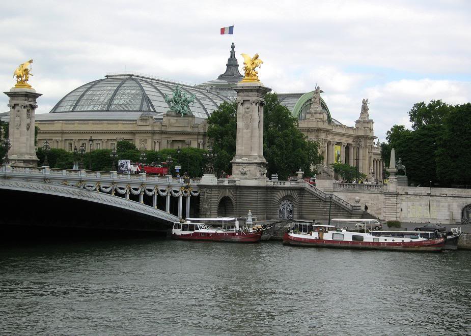 Мост Александра Третьего – ещё один пример искусства французских инженеров-строителей. Названный в честь царя Александра III, заключившего в 1892 году франко-русский альянс, мост был построен ко Всемирной Выставке 1900 года (Николай Второй заложил первый камень в основание моста в октябре 1896-го). Мост держится на одной пологой шестиметровой стальной арке. Создателям этого сооружения была поставлена задача: сделать так, чтобы конструкция моста не заслоняла вида ни на