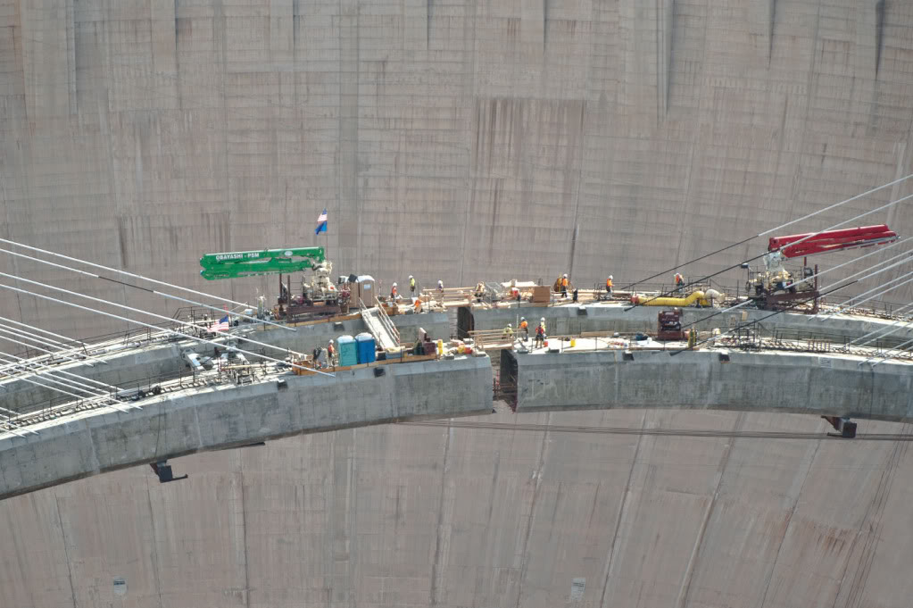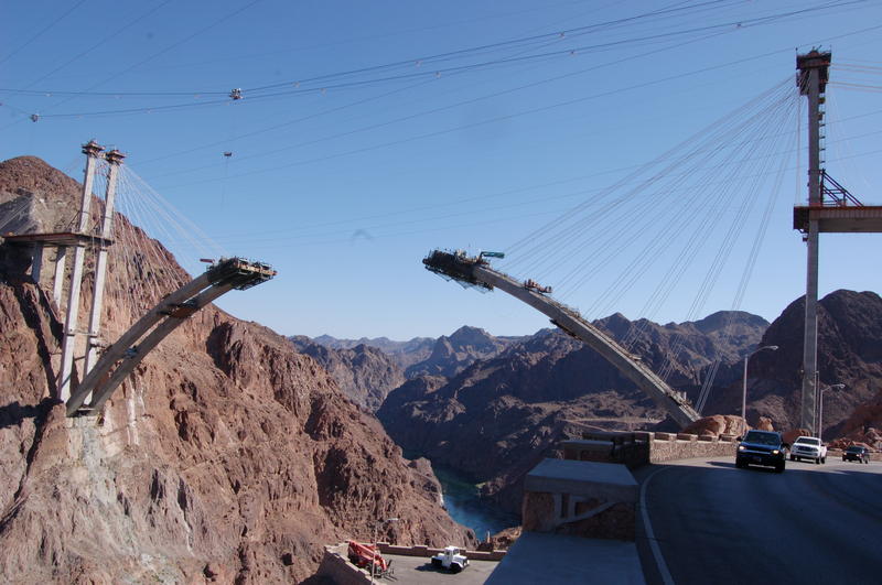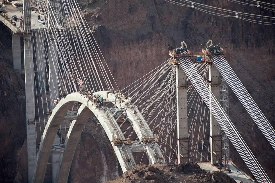 Новый мост вблизи плотины Гуверовской ГЭС постепенно обретает форму.