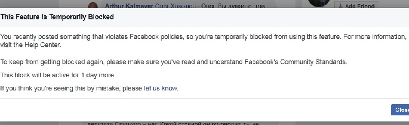 Фейсбук временно закрыл мне возможность писать из-за шутки на странице френда: я представился как известный в марьиной роще антисемит и жыдобендеровец