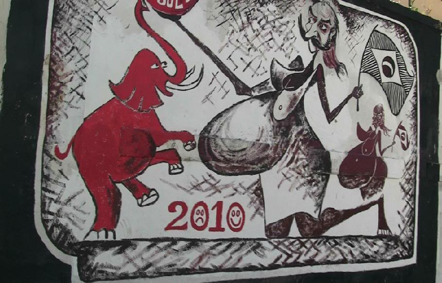 На прощание – графитти этого года, оставленного Селароном на стене дома в Санта Терезе, неподалеку от его лестницы. Здесь он и сам изобразил себя вместе с дамой сердца. С годами они становятся неуловимо похожи... и оба беременны...