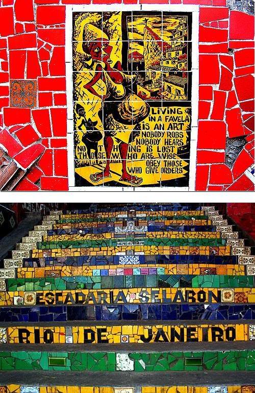 Хорхе Селарон – художник, уроженец Чили – жил (и до сих пор живёт) в доме, выходившим фасадом на старую полуразрушенну ю лестницу. В 1990 году он, по своему почину, решил заняться приведением в порядок этой лестницы, используя мозаику из керамики и зеркал и кафельные плитки. Поначалу соседи посмеивались над усилиями художника: их забавлял выбор цветов для облицовки ступенек – ярко-жёлтых, синих и зелёных. Селарон отмахивался от насмешек – он знал, что делал: ему нравятся цвета бразильского флага. Работа по облицовке лестницы постепенно стала главным занятием его жизни, превратившись в навязчивую необходимость. Он забросил все остальные свои проекты, ему постоянно не хватало денег на жизнь. Приходилось распродавать старые работы. Горсовет отключал ему телефон и электричество за неуплату счетов, но художник продолжал работать. Дважды его пытались выселять из дому. В конце концов, к 1998 году, Селарон ухитрился облицовать всю лестницу (250 ступеней!) мозаикой и плитками. Свою работу он называет выражением восхищения бразильским народом.