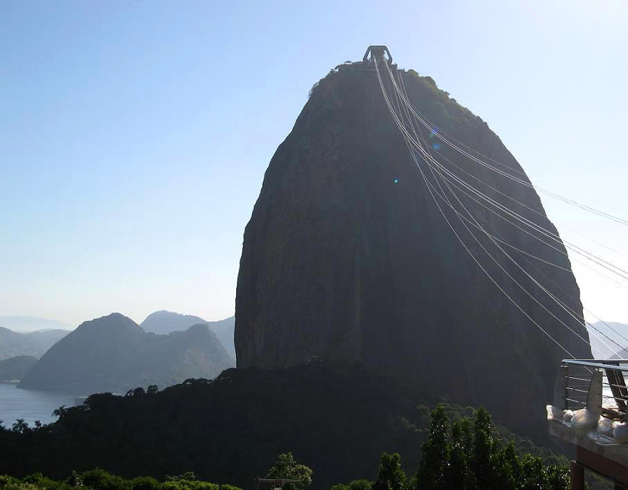 Pão de Açúcar – пик высотой почти в 1300 футов (396 метров), расположенный на островке вулканичского происхождения у входа в залив Guanabara Bay. Эта гора сложена из гранитов и кварца. Подняться на неё можно подвесным вагончиком кабельного лифта (по-португальски, bondinho или teleférico).