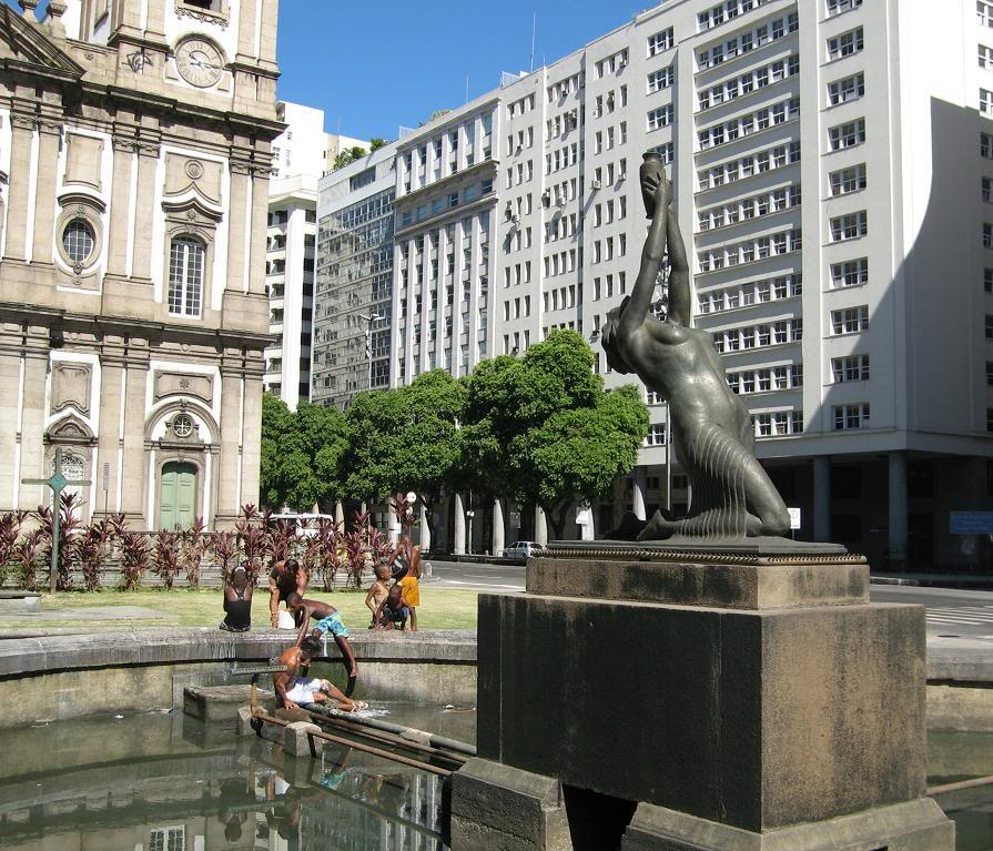 Centro – место, откуда есть пошёл Рио де Жанейро. В центре расположена бóльшая часть старинных храмов, знаменитых площадей, монументов и музеев. Теперь рядом с ними выросли начинённые офисами небоскрёбы. Здесь, в кондиционирова нных башнях синего стекла бразильские белые воротнички зарабатывают на хлеб с маслом, совершая ту самую тягомотную офисную работу, которая ежедневно приводит и многих из вас, друзья мои, в стеклянные башни ваших больших городов. После рабочего дня и по викендам центр пустеет. Вечерами здесь небезопасно: окраины сливают сюда совсем уж опролетаренных бедолаг и наркоманов, не прижившихся в фавелах.