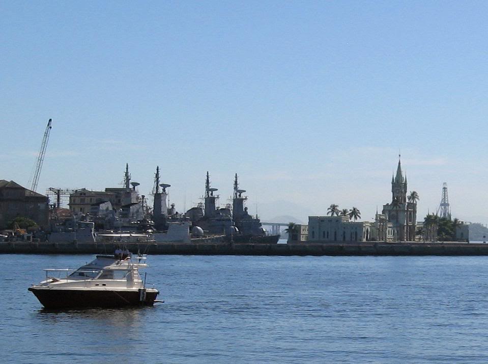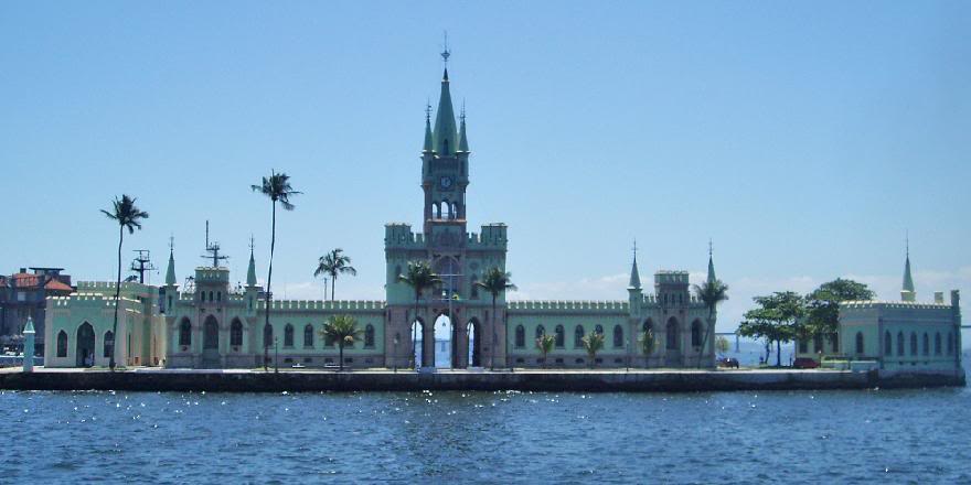 Если приглядеться к верхнему снимку, в правой его части можно разглядеть замковую башню. Это очень интересное здание стоит на островке, носящем название Fiscal Island, и представляет один из последних бриллиантов, оставленных Бразильской Империей городу. Остров находится всего на расстоянии километра от берега, и стоящий на нём дворец сверкает изумрудной зеленью, отражаясь в воде Guanabara Bay.