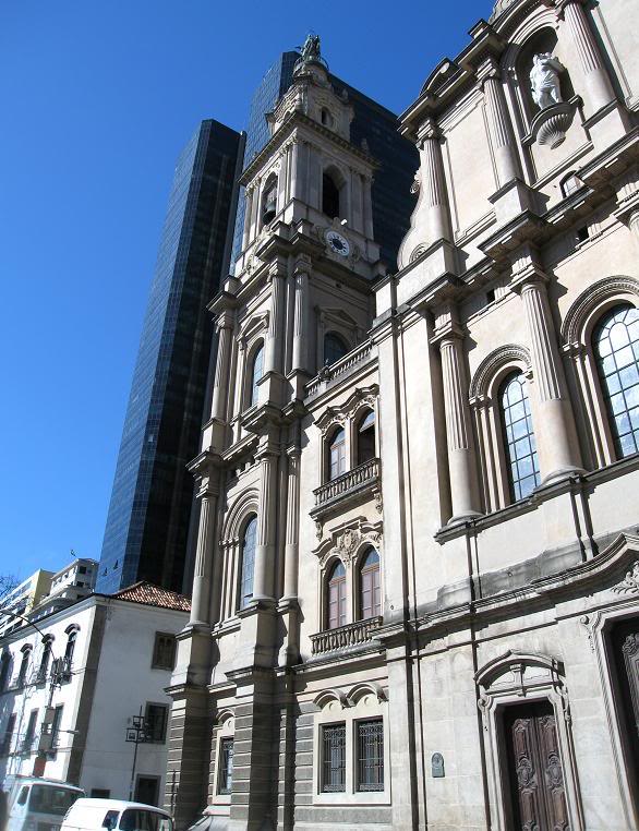 Только в немногих случаях, когда между башнями и храмами оставлено достаточно пространства для дыхания, можно сказать, что новый ракурс относительно терпим... вот как здесь – Igreja Nossa Senhora do Carmo da Antiga se, примостившаяся в тени синего небоскрёба...