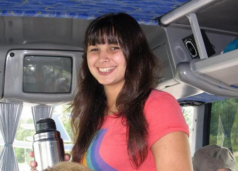 На следующем снимке наша очаровательная девушка-гид с термосом в руках угощает гринго мате в автобусе по дороге в Дон Сильвано: