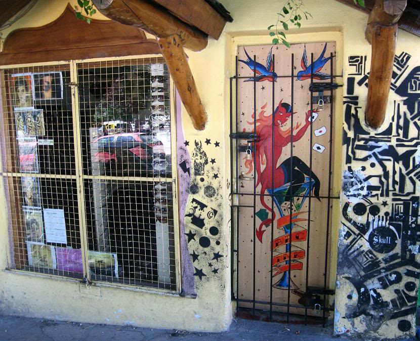 Шоколад-шоколадом, но не шоколадом единым жив молодёжный курорт. В наличии полный набор предприятий, обещающих туристам все прелести ночной жизни... Горе мне - в Барилоче мы ложились спать рано (по утрам нужно было отправляться в очередные путешествия), так что не могу рассказать вам, что именно предлагают посетителям заманчивые Двери в Ад