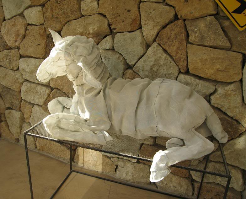 В холле отеля выставлены показавшиеся мне забавными работы местных художников. Вот две из них. Первая – овечка, выполненная из тонкой проволочной сетки:
