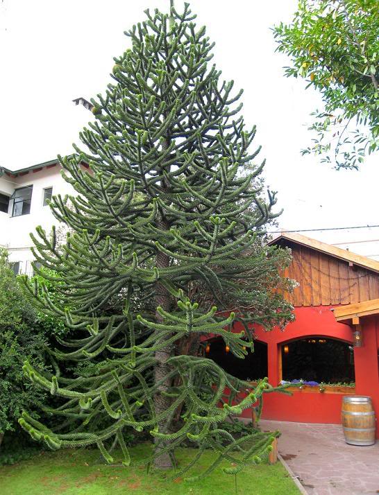 Меня заинтересовал один вид деревьев (к сожалению не знаю, как они называются), которые по форме вроде бы должны быть хвойными, но вместо хвои ветки покрыты совершенно твёрдыми зелёными наростами с острыми краями. Биологи, если знаете, как называется это дерево, подскажите, пожалуйста: