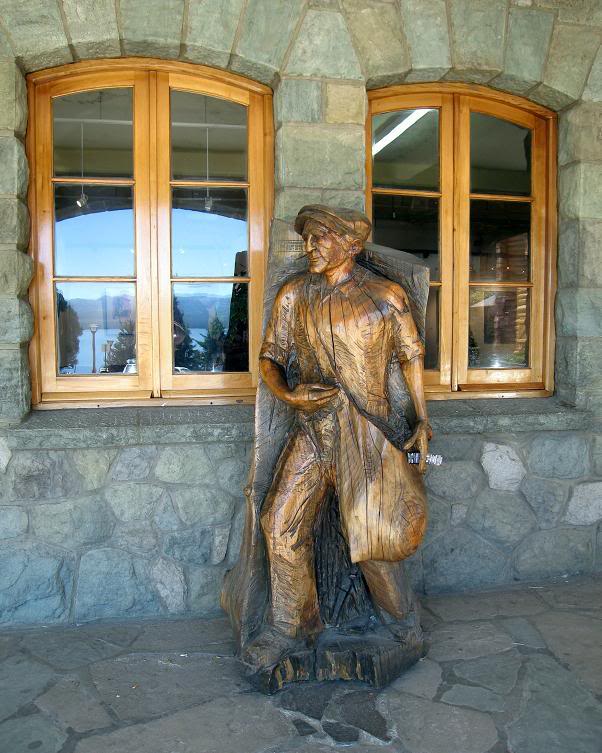 ого здания стоят фигуры, вырубленные из того же дерева: