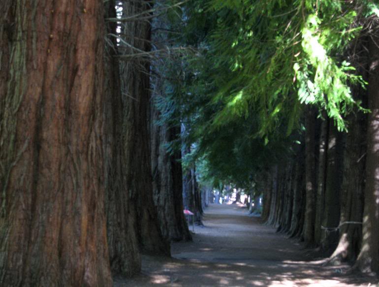 Как оказалось, в числе редких деревьев, завезенных для местного питомника, были и калифорнийские секвойи. Они прекрасно себя чувствуют в здешнем климате на этой высоте – благодаря подымающимся с озера туманам. Вот молоденькая шестидесятилет
