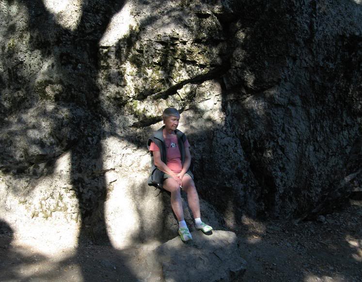 Остановились обсудить, настолько ли мы жаждем самогона, чтобы переть в полуденную жару на такую гору, и пришли к консенсусу: нет, сядем в тенёчке и обойдёмся бутылкой вина, предусмотрител