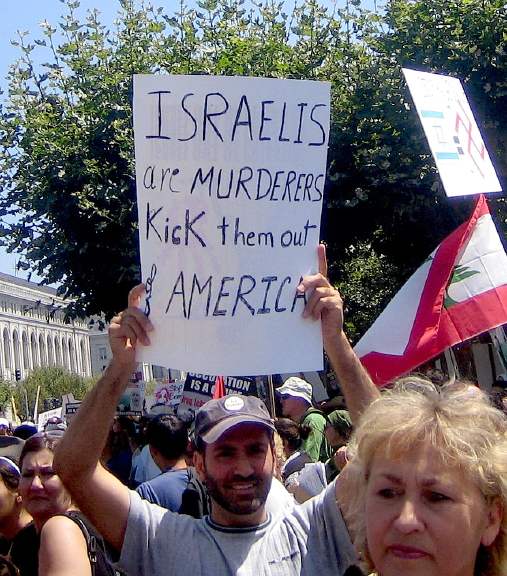 ой партии Венесуэлы. Никаких пояснений по поводу того, где находится пресловутый "дом" евреев, нет. Странно? Да. Но мы, пожалуй, слишком много требуем от товарища Чавеса. Давайте лучше глянем, чего требуют левые в Америке. Вот фотография с демонстрации 12 августа 2006 года в моём родном городе Сан-Франциско: