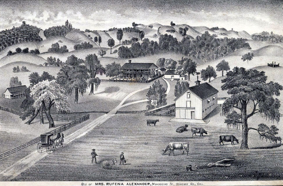 Долина в ста милях к северу от Сан-Франциско, известная как Alexander Valley, получила своё название в честь одинокого всадника, появившегося здесь в 1840 году. Один из первых калифорнийских пионеров, Сайрус Александер был уроженцем Пенсильвании. Молодым человеком он с лошадью, седлом и ружьишком отправился на дикий Запад в поисках приключений и возможности разбогатеть. Первое время в качестве «траппера» занимался охотой на бобров; не слишком преуспев в охотничьем промысле, мыл золотишко на быстрых речках Сьерра-Невады, потом познакомился в Сан-Диего с капитаном Фитчем, и тот нанял его для поиска участков земли в северной Калифорнии, пригодных для сельского хозяйства. В долине к западу от реки Сакраменто Сайрус Александер определил 48,000 акров как первоклассое место для любых сельскохозяйст венных работ. Фитч пообещал Александеру вознаградить его поиск наделом земли и обратился к мексиканскому правительству за получением гранта на строительство ранчо в долине. Получив грант, Фитч основал в безымянной долине огромное хозяйство, ставшее известным под именем Rancho Sotoyome; оно обозначало северную границу владений Мексики в Калифорнии. Сайрус Александер в конечном счёте и сам осел в долине, получившей впоследствии его имя.