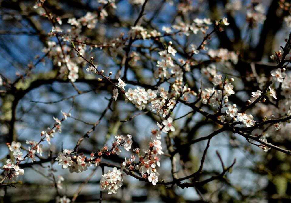 На лугу за школой буйным цветом - белым и розовым - цветут дикие алычёвые деревья.