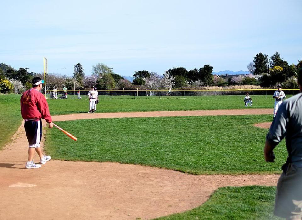 Деревенский ballpark - стадион для бейсбола. Первая весенняя тренировка.
