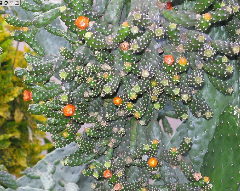 Фрагмент цветущего кактуса (целиком этот кактус был в полтора моих роста, но цветочки такие мелкие, что я снял лишь часть растения).