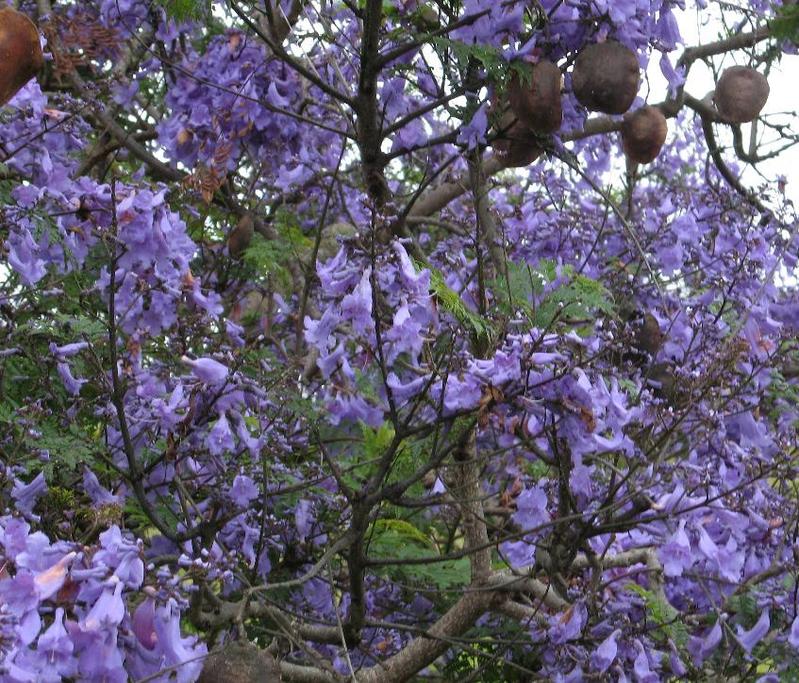 В той же части острова, в зоне облаков, в начале мая цветут невероятным сиренево-голубым цветом деревья “джакаранда”. То, что кажется плодами, на самом деле – растения-паразиты.