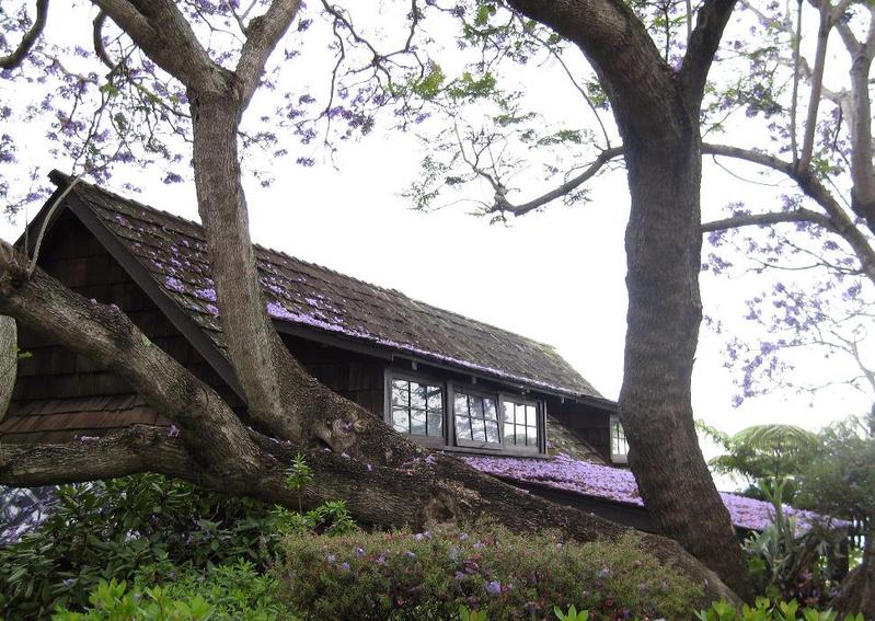 Под этими деревьями вся земля устлана сиреневым цветом джакаранды. Вот снимок ресторана, где мы остановились перекусить – крыша пристройки покрыта теми же вездесущими цветами. Мне очень нравится эта картинка.