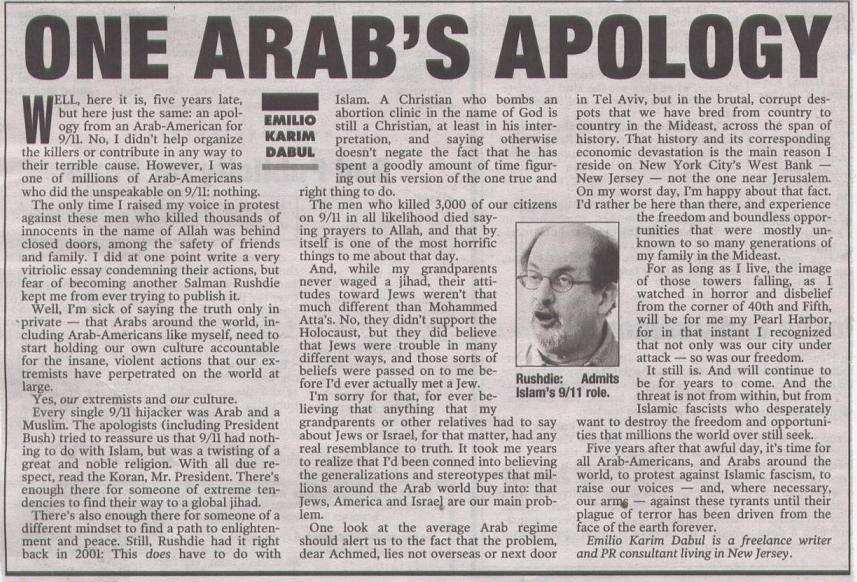 эта статья американского араба была опубликована 12 сентября этого года в газете Нью-Йорк Пост