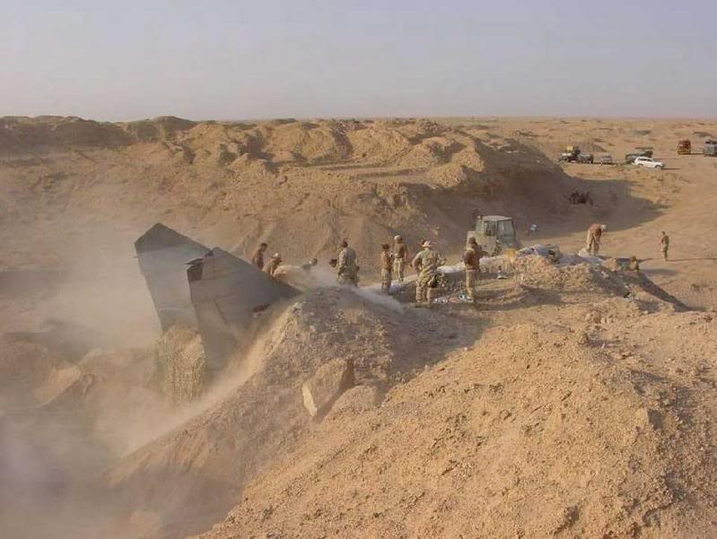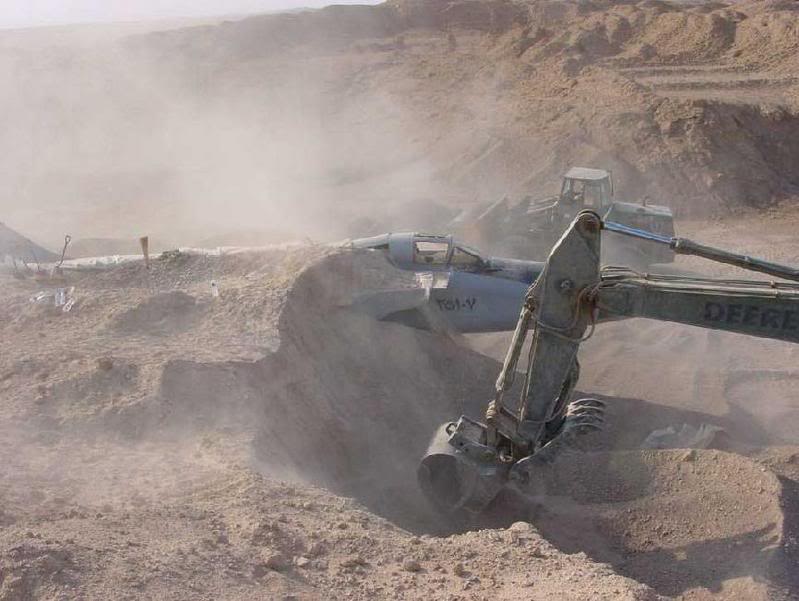 Иракский военный самолёт - усовершенствов анная версия МИГ-25 (Foxbat) - был найден захороненным в песке после того, как один из иракских военных чинов сообщил об этих захоронениях нашим военным.МИГ, показанный на этих фотографиях, был спрятан в массивных песчаных дюнах неподалеку от лётного поля в Аль Таккадуме и был успешно извлечён оттуда соответствующи ми американскими службами. Это один из более чем двух дюжин иракских самолётов, спрятанных в песке, наподобие сундучка с сокровищами, в ожидании того, что в нужный час их можно будет отрыть и использовать против войск коалиции.Вопре ки некоторым сообщениям прессы, далеко не все эти самолёты были доставлены Ираку во время первой иракской компании, связянной с освобождением Кувейта. Многие были доставлены позже, насмотря на существовавшее эмбарго на военные поставки Ираку, принятое ООН.Показанный на снимках самолёт является усовершенствов анным для военной разведки вариантом Миг-25го, о его существовании на Западе ничего не было известно; он оборудован современными устройствами для ведения боя.Для извлечения МИГа из его песчаного хранилища потребовалось тяжёлое оборудование: самолёт имеет более 70 футов в длину и весит почти 25 тонн.Данная модель МИГ-25 используется сегодня российскими ВВС. Этот самолёт имеет максимальную скорость, превышающую 2000 миль в час (3 Маха) и потолок свыше 75 тысяч футов.Самолёт был завёрнут в камуфляжную сетку, герметизирован, а крылья сняты и спрятаны отдельно под слоем песка более 10 футов толщиной.У американской разведки слюнки потекли, когда специалисты поняли, какая рыбка попалась им в сети. Самолёт оборудован новейшими электронными устройствами русского и французского производства - в нарушение запрета ООН на поставку подобных устройств Багдаду. Интересно будет послушать объяснения российского МИДа по этому поводу...