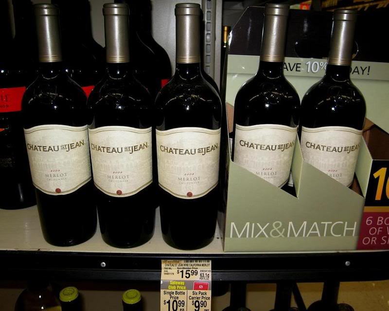 Много смеха выпало нам в один из дней, когда мы отправились в Лахайну пополнить запасы быстро испаряющегося вина. В супермаркете на Lahaina Cannary Mall, в винном отделе нас ждал восхитительный брикет юмора. Вот, вглядитесь в эти бутылки. Вам ничего не кажется странным в калифорнийском мерло Chateau St.Jean?