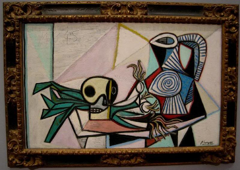 Пабло Пикассо, “Натюрморт с черепом, зелёным луком и кувшином”, 1945 год