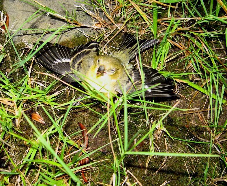 Сегодня утром проснулся рано и лежал, с наслаждением ощущая полнейшую неподвижность собственного тела перед прыжком из постели. Вдруг в верхнюю фрамугу окна спальни с силой что-то ударило, и краем глаза я уловил падающий тёмный комок. Выскочил во двор. Под окном лежала, раскинув крылья, синичка.