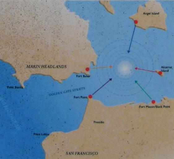cан-Францисский Залив всегда считался одной из важнейших стратегических стоянок флота на западном побережье. Защита залива от нападений врага имела и стратегическое, и символическое значение и во времена испанского владычества, и позже во времена мексиканского присутствия в Калифорнии, и для Соединённых Штатов. Захват портов Сан-Францисского Залива врагом (это случилось и с Испанией, и позже с Мексикой) означал потерю стоянки военно-морского флота и смену владельцев калифорнийских земель. Первые батареи были построены американцами в 1850-х и 1860-х годах.С 1892 по 1905 год здесь были построены бетонные укрепления Батареи Йейтс. Их артиллерия входила в общую систему огня, защищавшего залив, как показано на схеме, в дополнение к батареям, расположенным в Форт Пойнт (у нынешней южной оконечности Золотоворотско го Мостика), Форт Мэйсон (SF waterfront), а также на расположенных в заливе островах Alcatraz и Angel Island.