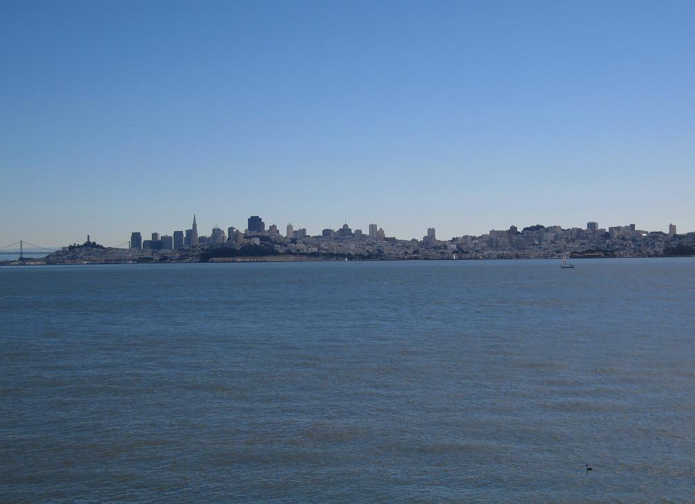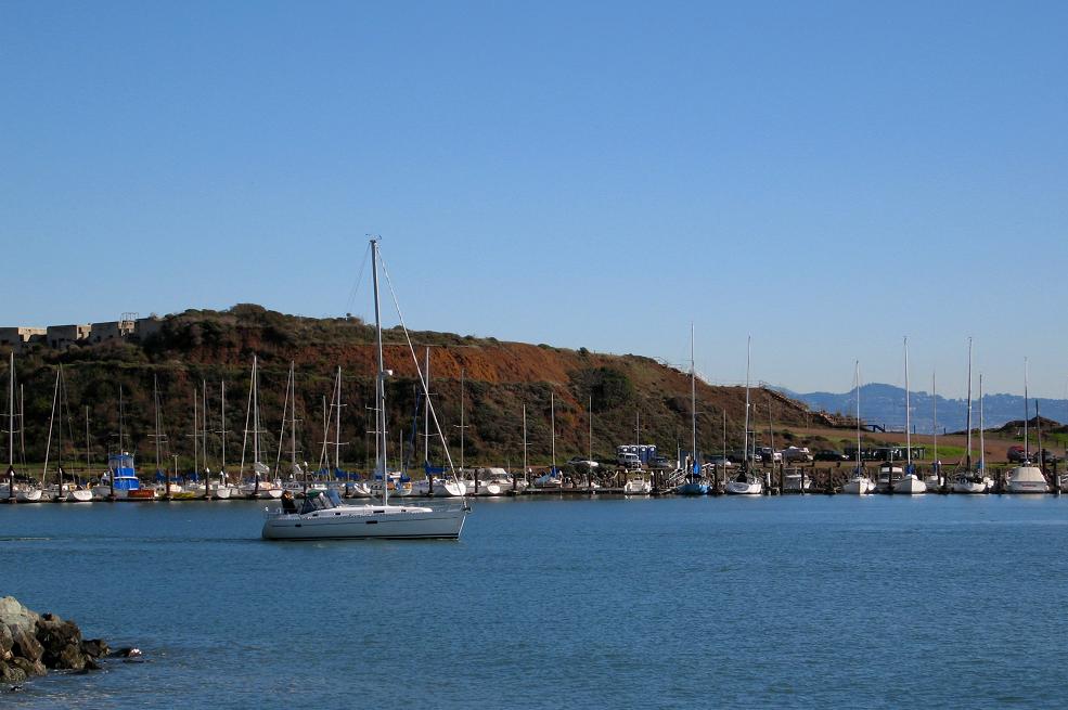 C востока невысокий мысок закрывает вид на Бёркли. На этой фотографии слева сверху видны бетонные сооружения Battery Yates, служившие когда-то артиллерийским и позициями.