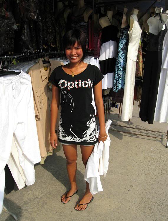 Option на груди – продавщица в лавке, торгующей шмотьём, километрах в 100 от Бангкока:
