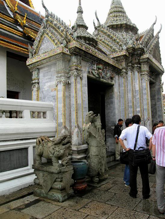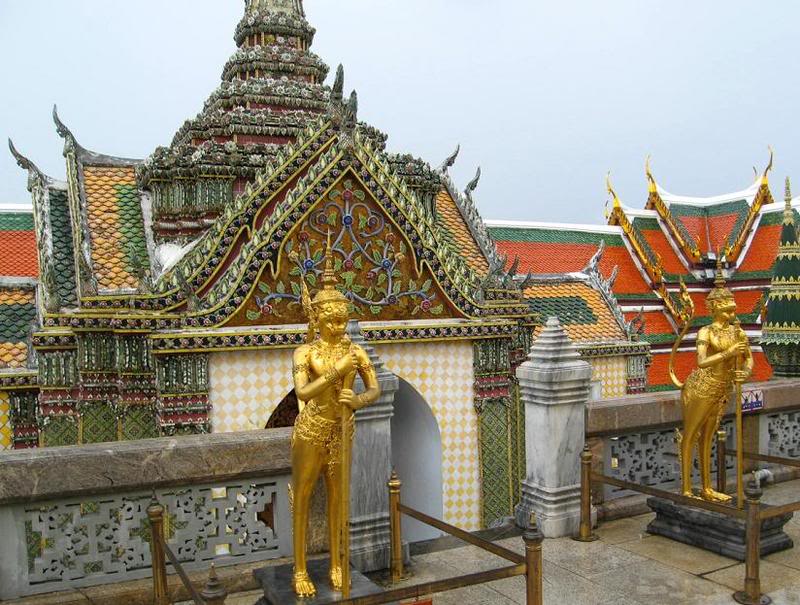 Из замка нас провожала пара золотых полуобезьян-полульвов – мы вступали на территорию храма Wat Phra Kaeo. Но о храмах – в следующий раз.