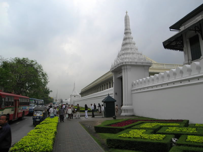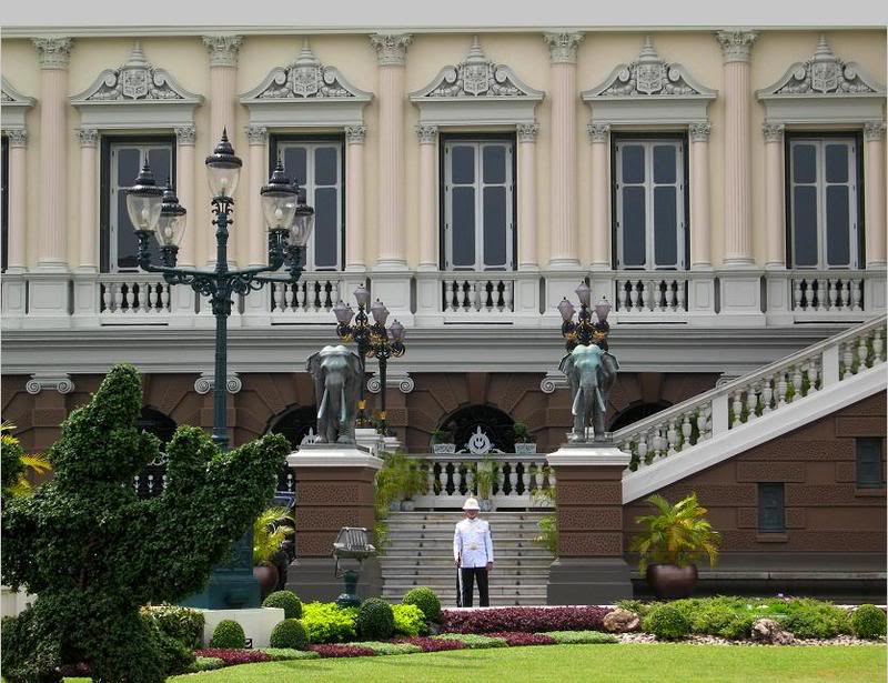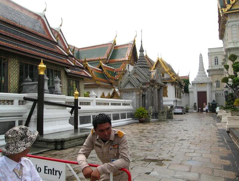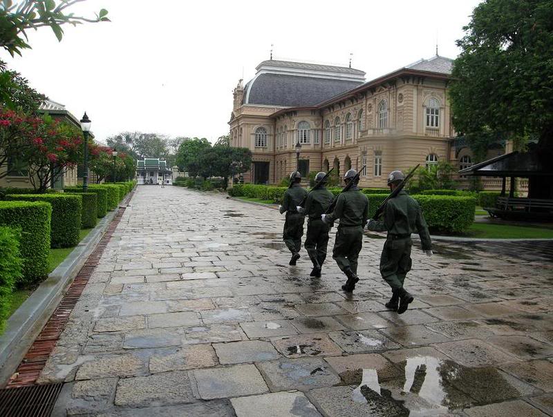 ь. Дворца не видно с улицы, он расположен на огромной территории (мы объехали вокруг неё на тук-туке), снаружи только стена, у входов военная охрана, за стеной высокие деревья сада, за которыми теряются силуэты зданий. Ничего не поделаешь, новая эпоха, новые требования к безопасности монарха. Любовь любовью, а госбезопасност