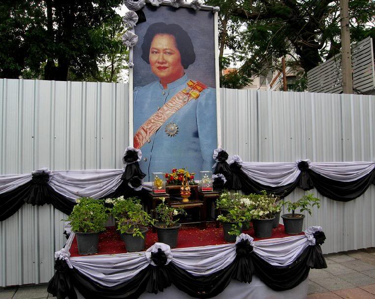 Во время нашего пребывания Бангкок был увешан знаками траура. Оказывается, недавно скончалась двоюродная сестра Короля, которая была старше его не несколько лет, но которую он с детства нежно любил.