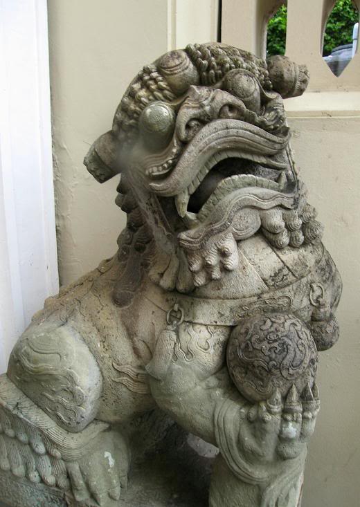А ещё там перед входом сидел саипатичный лев, во рту которого перекатывался каменный шар – язык. Наша дама-гид сообщила, что покатать шар во рту льва считается у таиландцев доброй приметой, и моя женщина не только сама несколько раз покатала шар из одного угла рта в другой, но и пристала ко мне, чтоб я тоже покатал. Я покатал. Не стоило спора.