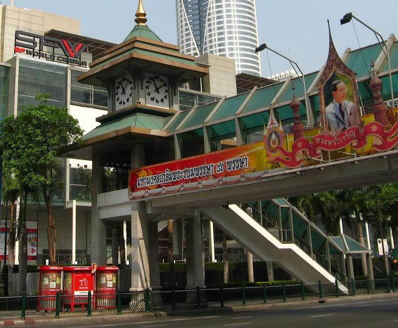 Skytrain’a украшены фотографиями Пумипона, отражающими разнообразные его заботы об интересах народа: Пумипон беседует с учениками профессиональн