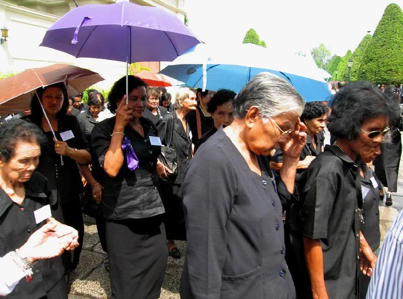 Толпами подваливали таиландские дамы в траурном убранстве. Все с видимым удовольствием и усердно участвовали в этом действе, я сказал Тоне, это восхитительно, демонстрация любви народа к королевской семье, без всяких принуждений, только успевай снимать!