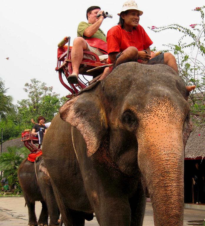 Последний снимок я номинировал (для себя, естессно) в качества победителя на моём личном конкурсе “Русские в Таиланде”. Но русским далеко до японцев. Жители страны восходящего солнца совершенно безумеют при виде своих соотечественни ков, сидящих на слоновьих спинах, они толпятся вокруг, восхищённо вскрикивают (что для обычно сдержанных японцев весьма нехарактерно), и в оргазмическом ступоре беспрерывно щёлкают камерами: