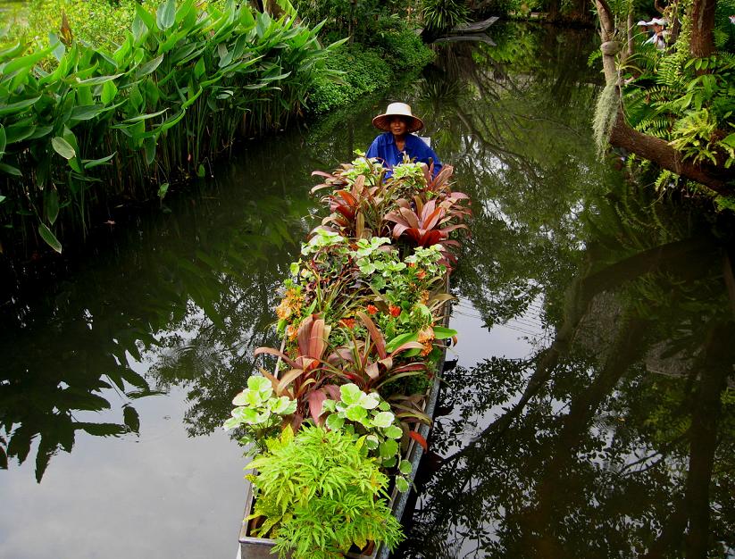 Здесь есть озерко и небольшой канал, котоый никуда не ведёт и на котором для жаждущих фольклора туристов размещена даже гружёная зеленью лодчонка с таиландской женщиной – эдакая малая потёмкинская деревня, фуфло, просящееся на фотографию для отчёта семье: