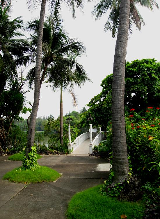 После базара необходимо было передохнуть и привести в порядок впечатления, и мы заехали в Суам-Сам-Пран, расположенный километрах в 30 от Бангкока на берегу реки Та-Чин. Здесь есть довольно приличные площадки для игры в гольф и Сад Роз. Мы сказали нашему гиду, что хотели бы побыть здесь сами, без её пояснений (слишком много pigeon English действует на меня удручающе). Она наклеила нам на грудь метки своей турфирмы, объяснив, что так ей будет легче распознать нас, ибо все иностранцы для неё на одно лицо...
