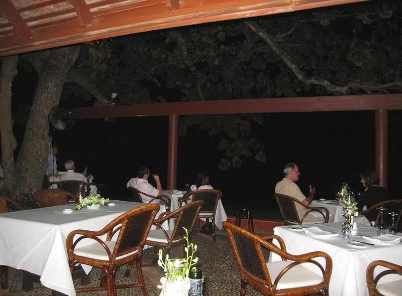 Первым делом мы отправились в Boat House Wine And Grill, обозначенный максимальным количеством долларовых знаков в путеводителе. Отлично вышколенные официанты говорили на приличном английском и во-время улыбались, убранство и ambience не оставляли желать лучшего, а вентиляторы бесшумно разгоняли жару раннего вечера. Мою супругу особо тронул вид с веранды на темнеющий океан. Женщины, выросшие в коммуналках Таганки, умеют ценить роскошь.
