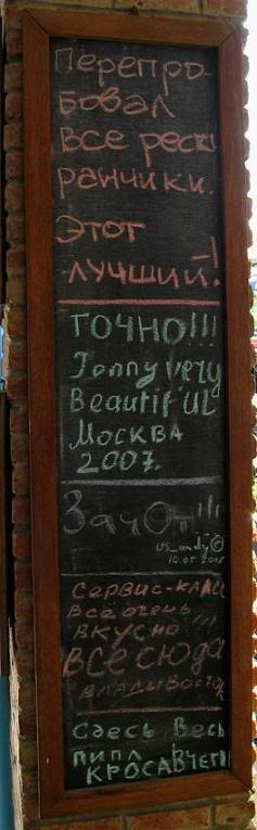 ... и средства народного творчества, как вот эти наскальные надписи, оставленные в Horn Grill Restaurant: